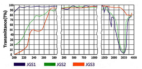 Note: When all the raw glass of JGS1, JGS2 and JGS3 is 10 mm thickness, the average transmittance of raw glass will be more than 90%.