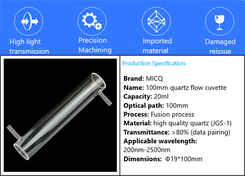 100mm quartz flow cuvette cylinder special for scientific research, acid and alkali resistance, high temperature resistance can be customized
