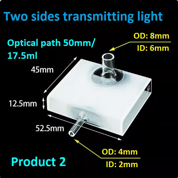 50mm quartz flow cuvette with UV transmission, acid and alkali resistance, specially designed for scientific research can be customized