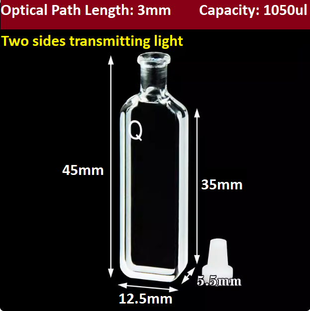 Airtight quartz cuvette 3mm with high light transmission resistant to acid and alkali integrated process circular dichroic femtosecond transient absorption cuvette