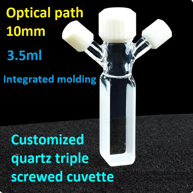 Customized quartz triple screwed cuvette screw thread sample cell integrated molding completely sealed resistant to acid and alkali