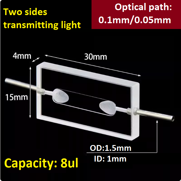 Optical Path 0.1mm/0.05mm Integrated Quartz Counting Cell counter Flow Cuvette 8ul Glued Combination Process Ultraviolet Quartz Cuvette