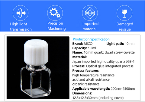 1. One is fused Quartz Cuvette (glue free), which is expensive, and suitable for strong corrosive solutions (such as benzene).