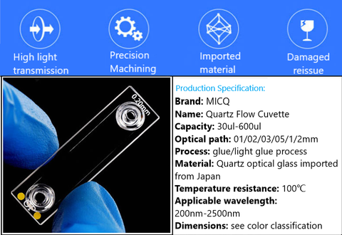 This quartz flow cuvette is equipped with quartz glass tubes at both ends, which has little influence on the tested sample and has good test stability.