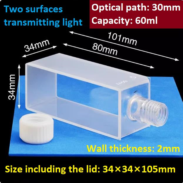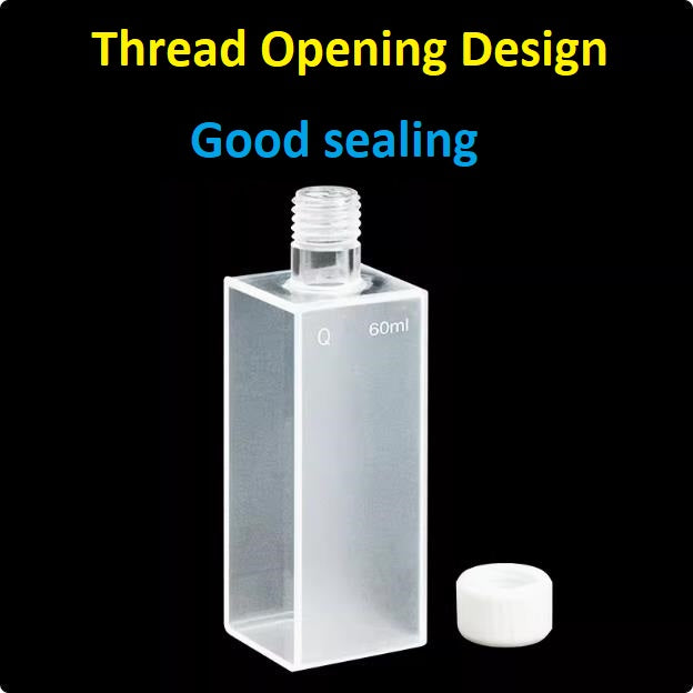 Quartz square cuvette sample cell with thread opening optical path 30mm and capacity 60ml two sides transmitting light ultraviolet