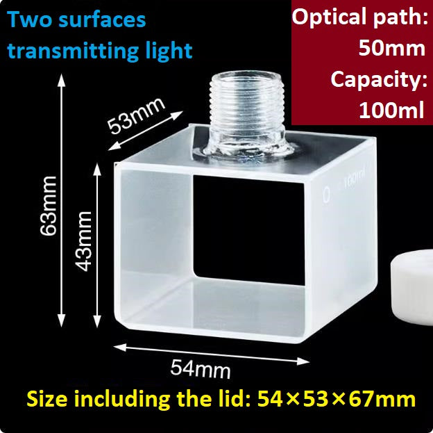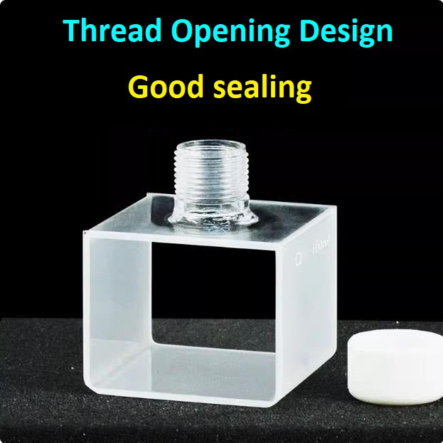 Quartz square cuvette with thread opening quartz sample cell optical path 50mm capacity 100ml two sides transmitting light ultraviolet