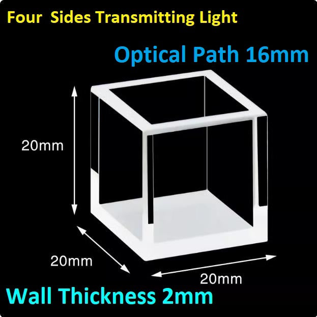 Quartz Square Sample Cell Optical Glued Integrated Process Optical Path 16mm Four Sides Transmitting Light Ultraviolet Cuvette Customized